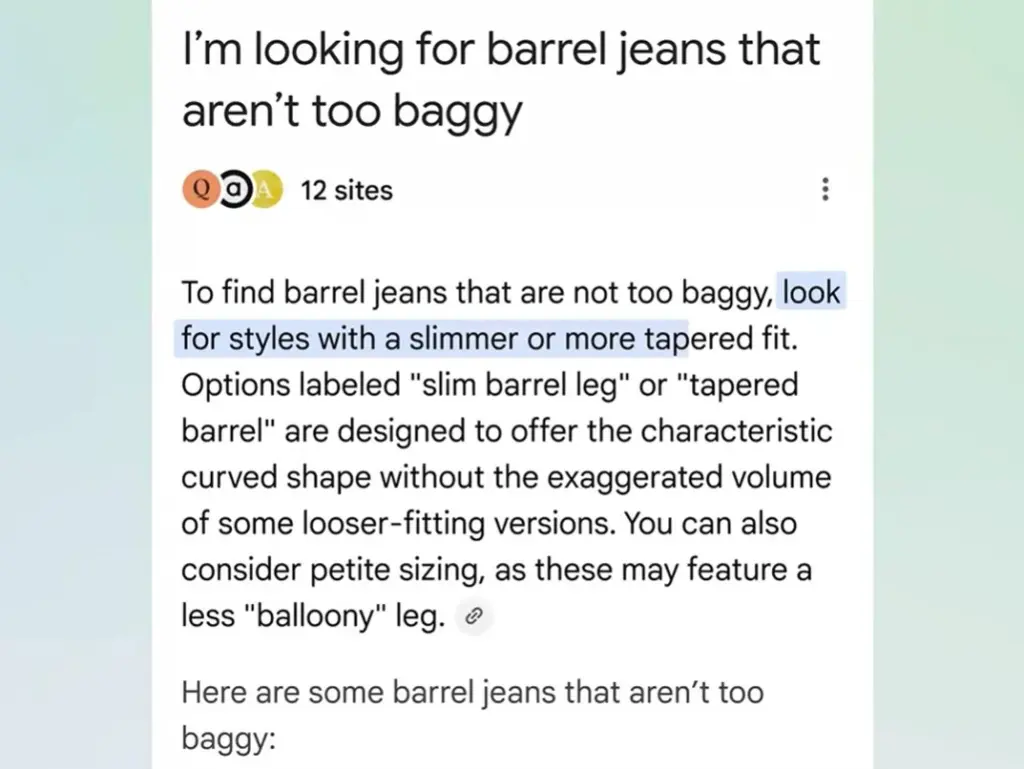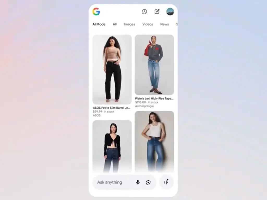 Googles neuer AI Mode bricht mit diesem Muster. Statt nur Listen mit Textlinks zu liefern, präsentiert die KI nun visuelle Übersichten mit relevanten Bildern, Designs und Konzepten. Nutzer können ihre Anfrage anschließend in einem natürlichen Dialog weiterentwickeln. Eine Eingabe wie „Zeig mir Varianten mit kräftigen Farben“ passt die Resultate sofort an – ähnlich wie in einem Gespräch mit einem persönlichen Berater.