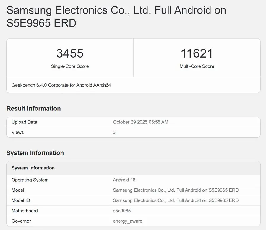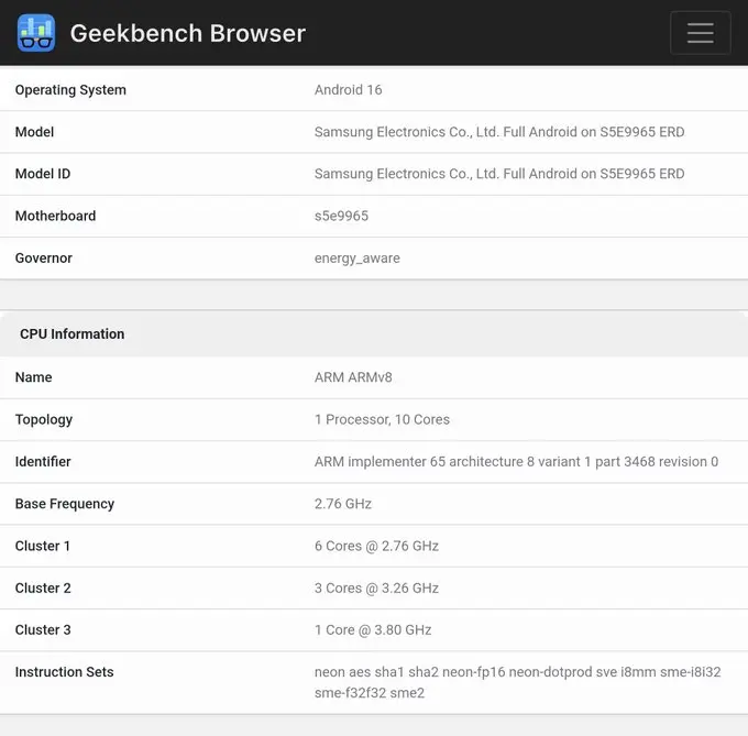 Der neue Geekbench-Eintrag vom 29. Oktober zeigt, dass die schnellere Exynos-2600-Version 3.455 Punkte im Single-Core- und 11.621 Punkte im Multi-Core-Test erreicht. Zum Vergleich: Die erste Version kam nur auf 3.309 / 11.256 Punkte. Zwar ist der Unterschied moderat, er belegt aber, dass Samsung weiter an der Feinabstimmung seiner Architektur arbeitet.