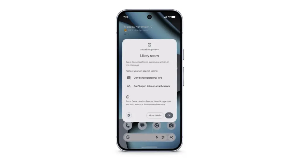 Parallel erweitert Google die telefonbasierte Scam-Detection auf weitere Länder: Nutzer eines Pixel 9 oder höher (außer 9a) in Australien, Kanada, Indien, Irland und Großbritannien erhalten nun ebenfalls Warnungen bei verdächtigen Anrufen.