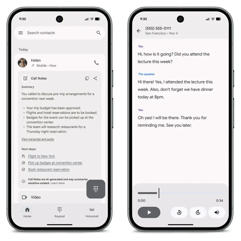 Ebenfalls neu ist die Call Notes-Funktion, die ab sofort in Australien, Kanada, Irland, Japan und dem Vereinigten Königreich verfügbar ist. Sie nutzt Gemini Nano, um Telefongespräche lokal aufzuzeichnen, zu transkribieren und automatisch zu strukturieren. Anschließend werden kurze Zusammenfassungen und empfohlene nächste Schritte erstellt – ganz ohne Cloudverarbeitung.