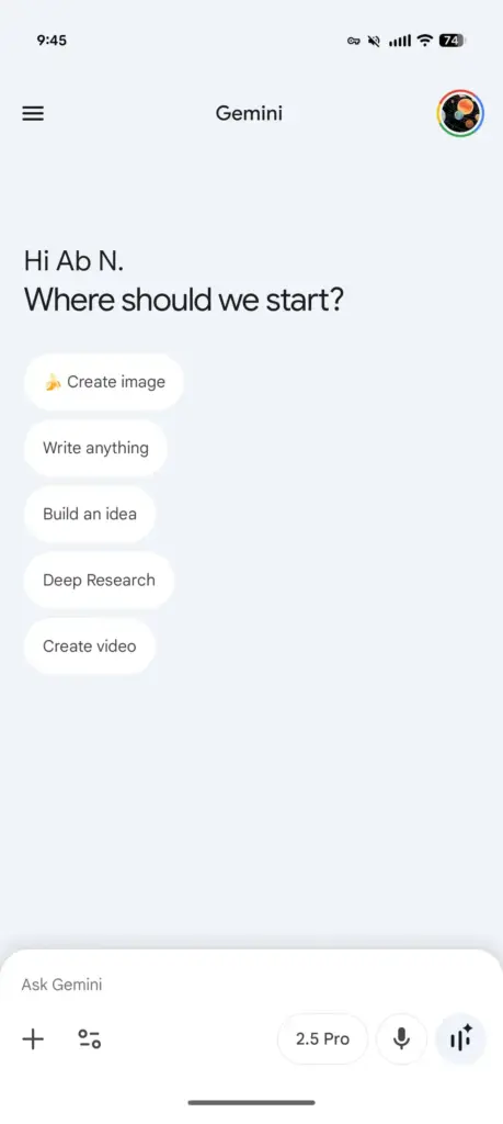 Die Startansicht von Gemini wurde am stärksten verändert. Anstatt der bisherigen mittig platzierten Elemente setzt Google jetzt auf ein klar linksbündiges Layout: