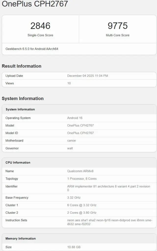 Kurz vor der offiziellen Präsentation des OnePlus 15R am 17. Dezember ist das neue Smartphone bereits in der Geekbench-Datenbank aufgetaucht. Unter der Modellnummer CPH2767 liefert der Eintrag einen ersten, sehr konkreten Hinweis darauf, wohin die Reise leistungstechnisch geht – und die Ergebnisse fallen überraschend stark aus.