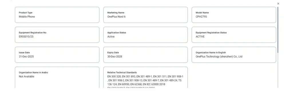 Das Nord 6 ist nicht nur in einer Datenbank gesichtet worden, sondern gleich in mehreren. Neben der bereits bekannten SIRIM-Zertifizierung in Malaysia ist das Gerät nun auch durch die UAE-Behörde TDRA gelistet. Diese Kombination aus Zulassungen aus verschiedenen Regionen ist ein starkes Indiz dafür, dass OnePlus das Nord 6 nicht nur regional, sondern weltweit einführen will.